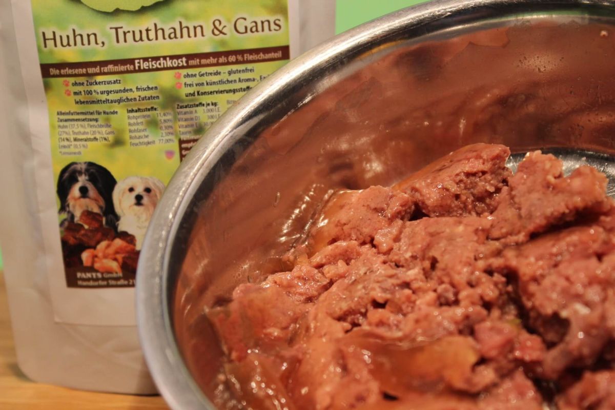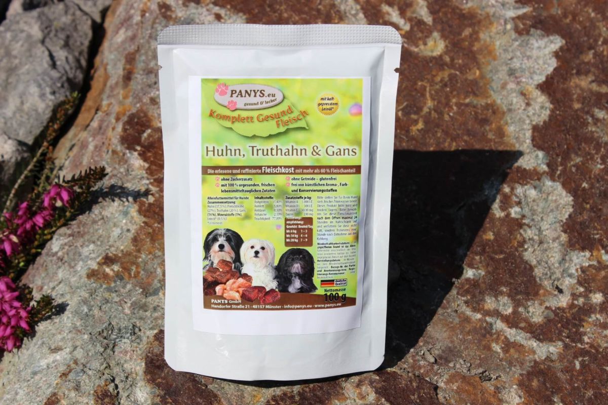 und etwas besonderes für Hunde mit Unverträglichkeiten auf rote Fleischsorten, da auch in der Fleischbrühe nur Huhn, Truthahn und Gans verwendet wurde. Mit den zugesetzten Mineralstoffen und dem Leinsamenöl wird das Ganze zu einer leckeren Fleischmahlzeit abgerundet.