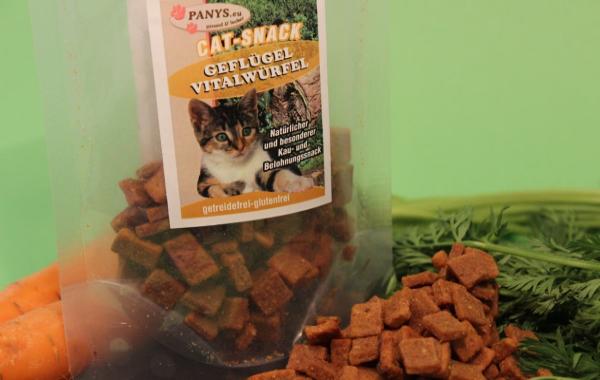 Geflügel-Vitalwürfel sind getreidefreie, glutenfreie Leckerchen für alle Katzen, auch für ernährungssensible Katzen aufgrund des Singleproteins besonders gut geeignet.