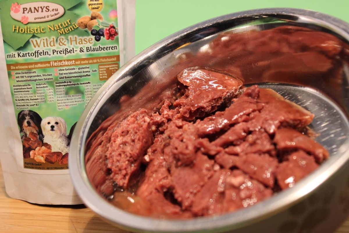 ein Alleinfuttermittel für ausgewachsene Hunde mit 64,0 % Fleischanteil vom Rind, Wild und Hase. Super geeignet für alle die kein Geflügel vertragen. Nur 4,0 % Kohlenhydrate in Form von Kartoffeln, also eine glutenfreie Rezeptur. 2,5 % Blaubeeren sind reich an Vitaminen und ideal als Antioxidantien. Man sollte davon nicht zu viel geben, daher haben wir uns auf 2,5 % beschränkt. Die Blaubeeren haben so gut wie keine Kalorien, sehr wenig Fruchtzucker und sie unterstützen das Immunsystem.