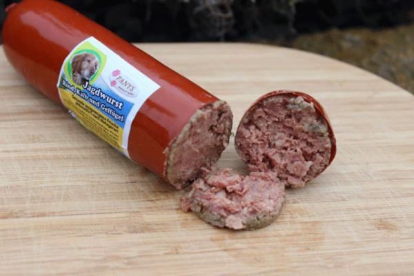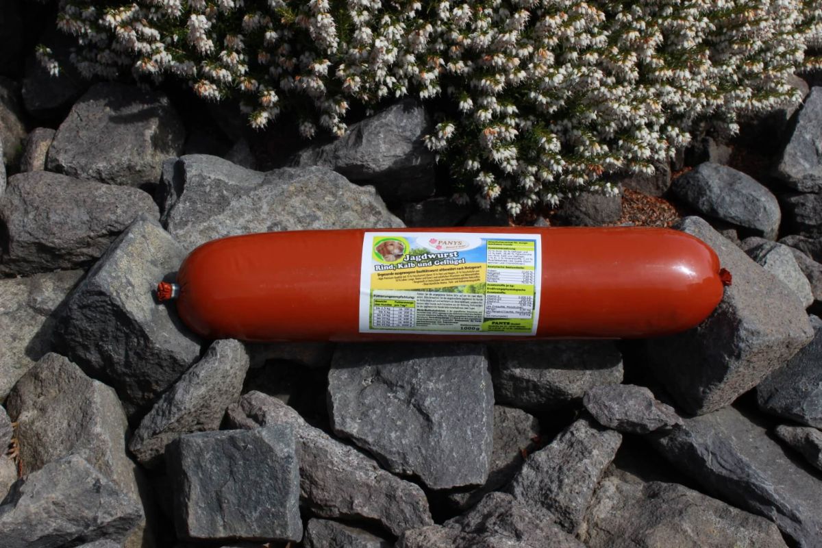 | mit Ei und Muschelextrakt und 70,0 % Fleischanteil Die Jagdwurst ist für alle ausgewachsenen Hunde super geeignet. Hergestellt wird die Wurst in Deutschland nach Lebensmittelstandard. Selbstverständlich haben wir auch hier auf künstliche Aroma- und Farbstoffe verzichtet und auf eine gluten- und getreidefreie Rezeptur geachtet. Auch Welpen freuen sich schon über Frischfleisch, daher dürfen Sie Ihrem Welpen ab einem Alter von 3 Mon. auf 4-5 Mahlzeiten verteilt die PANYS Wurst füttern. Aber bitte denken Sie daran, dass Welpen noch einen erhöhten Bedarf an Kohlenhydraten haben, also füttern Sie auf jeden Fall zusätzlich Welpentrockenfutter. |