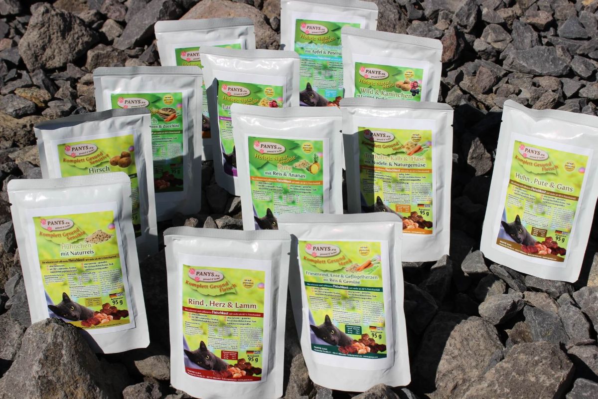 Alle PANYS Menüs im Pouchbeutel gibt es in 95 g und 295 g und sind als Alleinfuttermittel für ausgewachsene Katzen zugelassen. Mit wenigstens 60,0 % Fleischanteil und ohne Zuckerzusatz, sind es ernährungsphysiologisch ausgewogene Rezepturen.